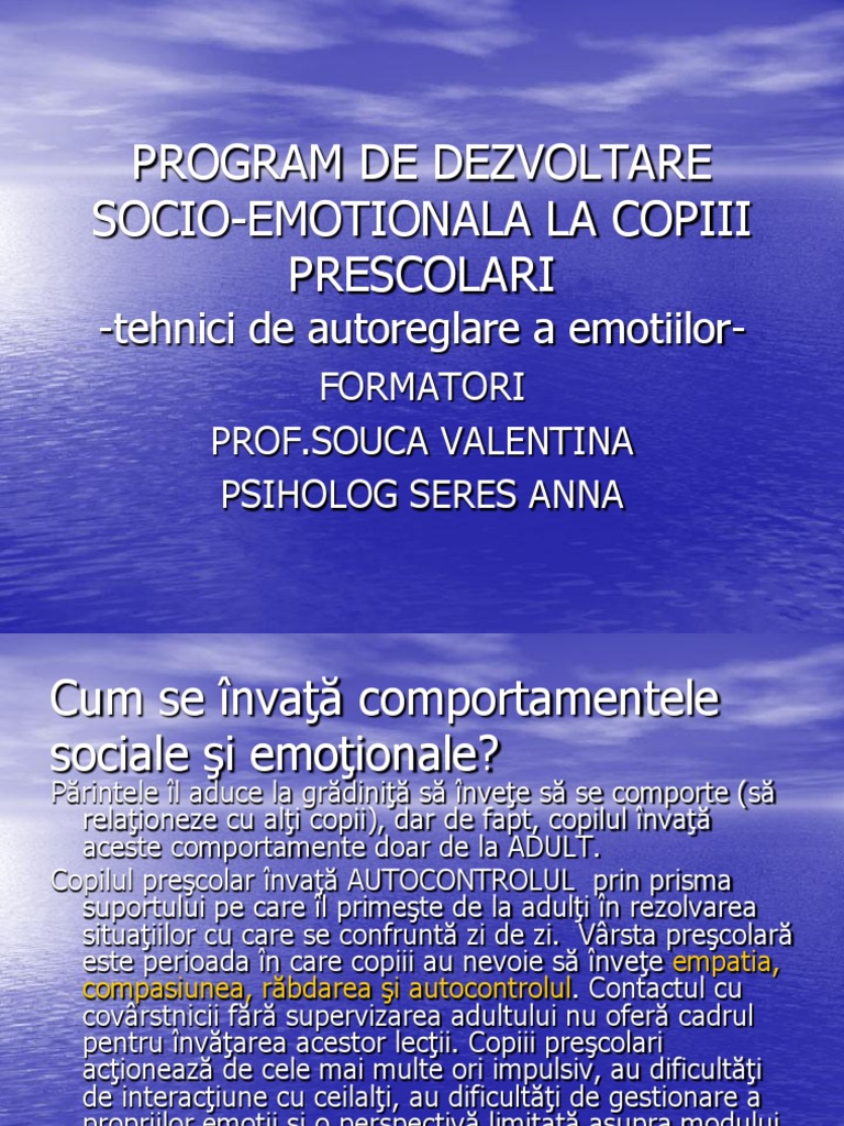 Program De Dezvoltare Socio Emotionala La Copiii Prescolari 2