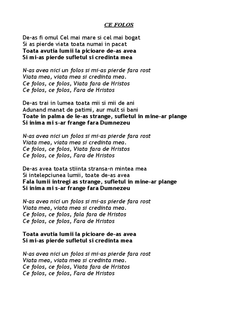 Isaura Gheorghiu Ce Folos Ce Folos O Viata Fara De Hristos 2017 Chords Chordify