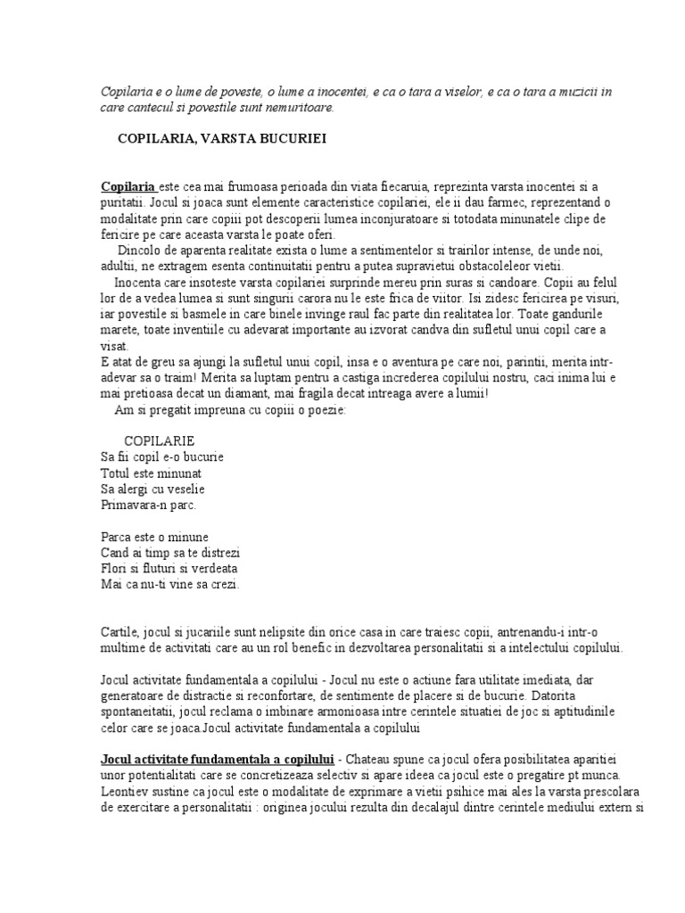 Varsta Copilăriei Fericite Este Una Dintre Cele Mai Frumoase Etape Ale Vieţii Omului