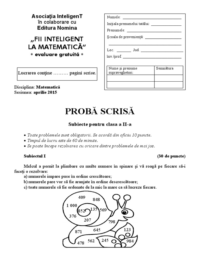 Autentifică te pe site pentru a putea lăsa un comentariu. Subiecte si bareme cls. Strategii metode si modele de rezolvare pentru concursul fii inteligent la matematica 2018. Absolvenţii de clasa a xii a susţin examenul de bacalaureat în perioada 13 iunie 8 iulie.