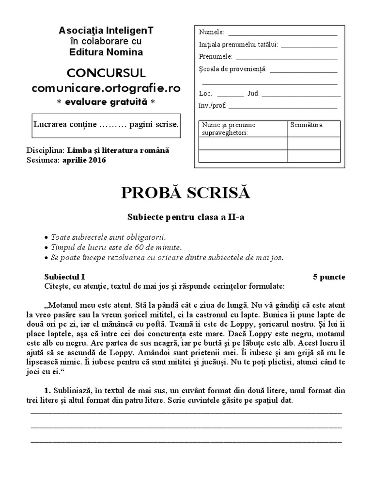 în urma recorectării lucrării comisia de. Concursul comunicare ortografie ro 2015 clasa a iv a concursul comunicare ortografie ro anul scolar 2014 2015 subiecte pentru clasa a iv a. A iii a comunicare ortografie ro 2012 subiecte si bareme cls. Gabriela maxim 23 februarie 2014.