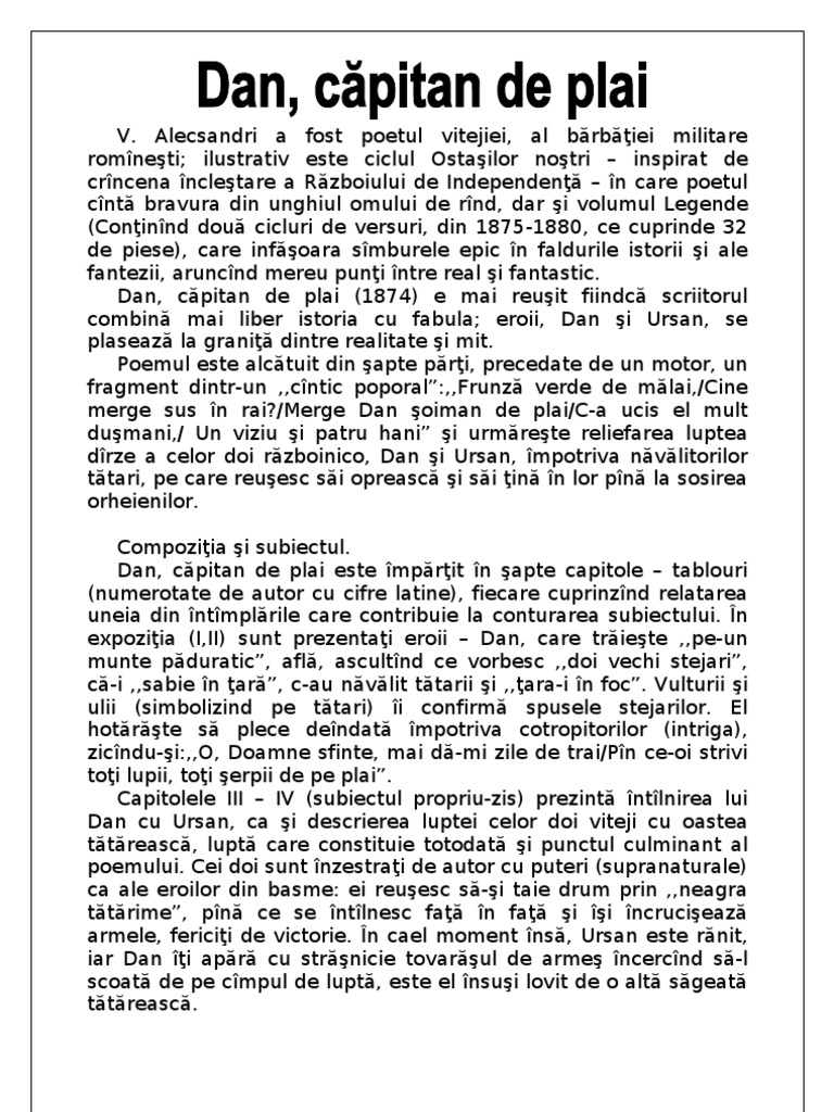 Comentariu Dan Capitan De Plai De Vasile Alecsandri Famouswhy Ro
