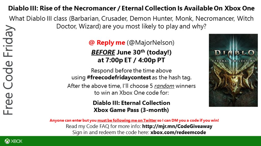 Larry Hryb On Twitter Freecodefridaycontest Time Read This And You Could Win A Code For Diablo Iii Eternal Collection Xbox Game Pass 3 Month On Xbox One Https T Co 384ubh6pf3