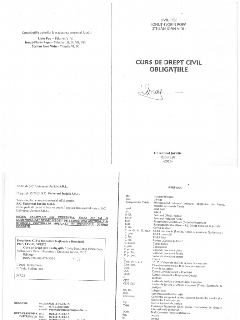 Liviu Pop 2015 Drept Civil Teoria Obligatiilor Pdf