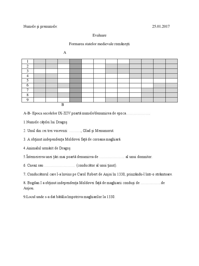 Evaluare Istorie Formarea Statelor Medievale Romanesti