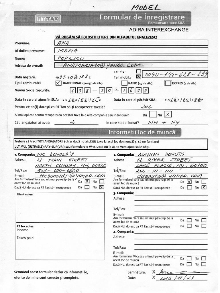 Model Tax Refund Form