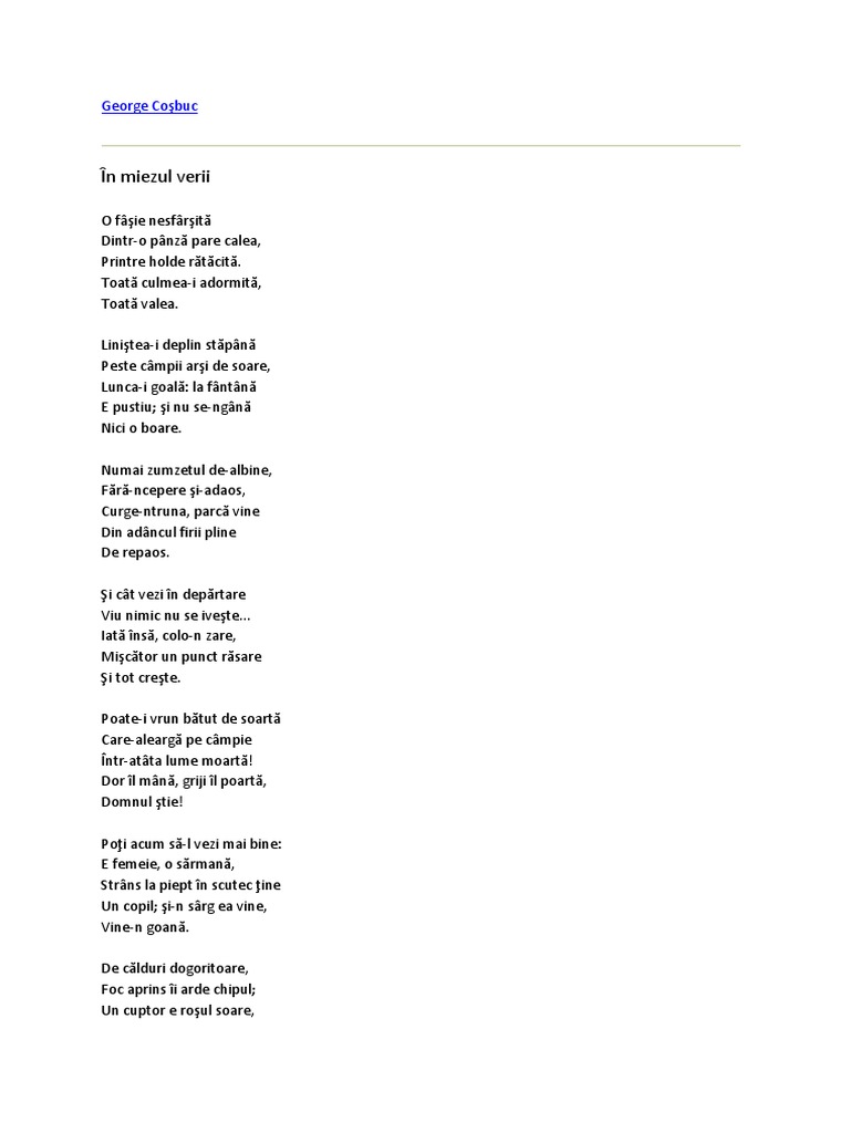 In Miezul Verii De George Cosbuc Anideșcoală Ro