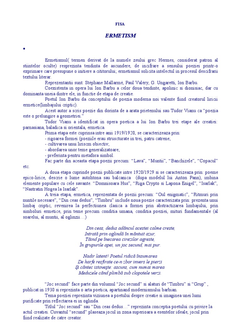 Joc Secund Ion Barbu Romanian Language And Literature Studocu
