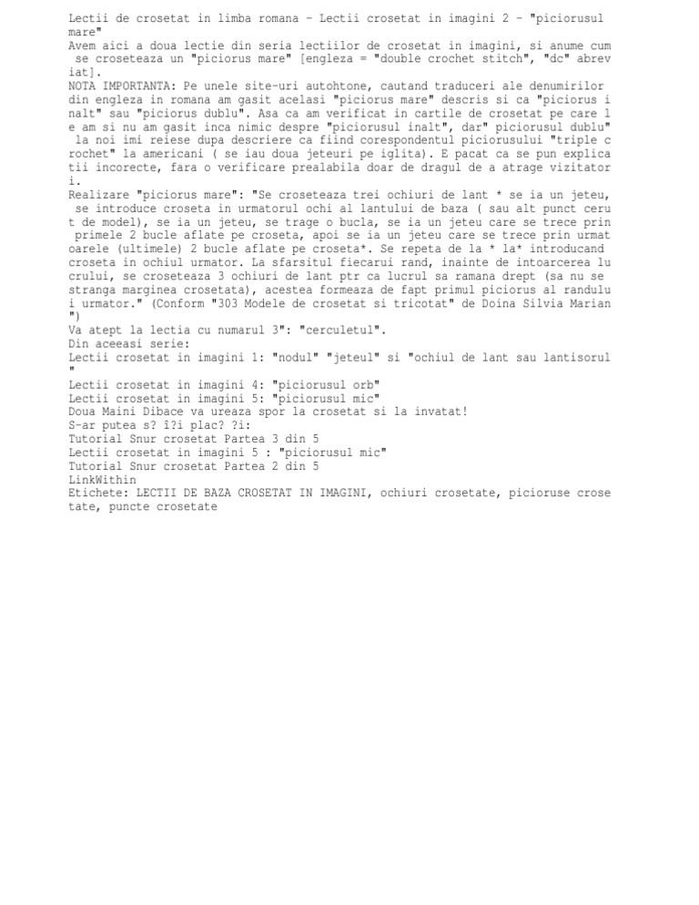 Lectii De Crosetat In Limba Romana
