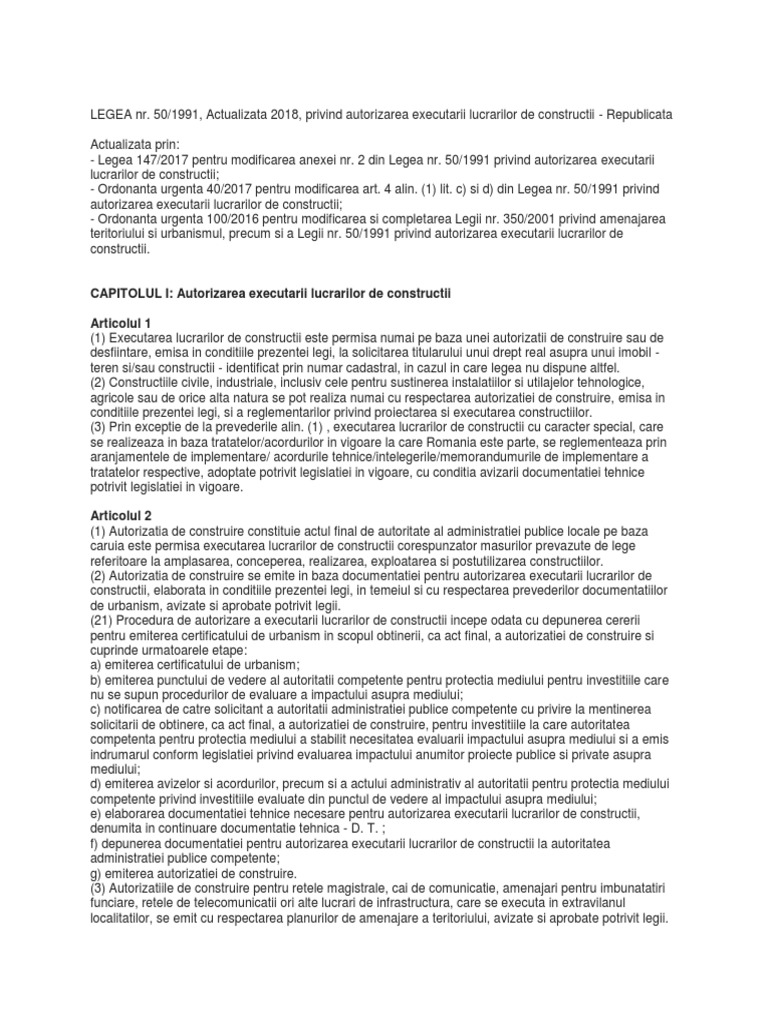 Legea 50 1991 Actualizata In Nov 2019 Pdf