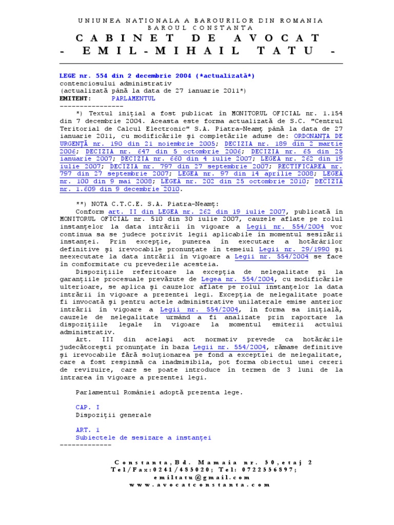 Legea 554 Din 2004 Actualizata Pdf