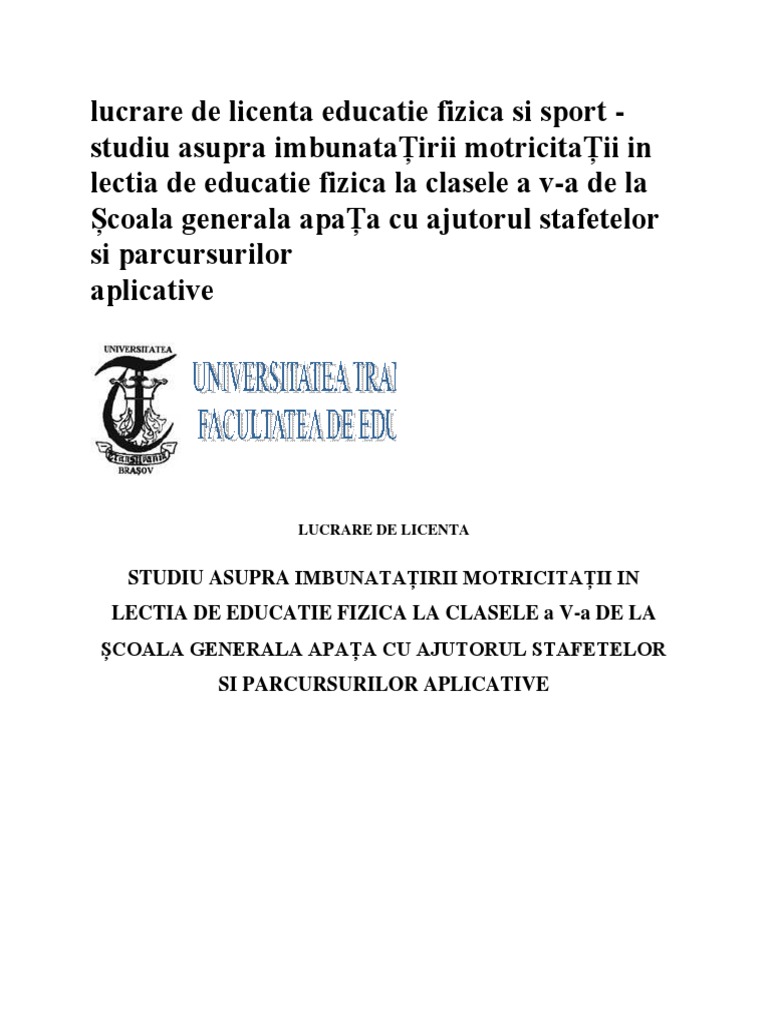 Lucrari De Licenta Pentru Educatie Fizica Diploma Ro