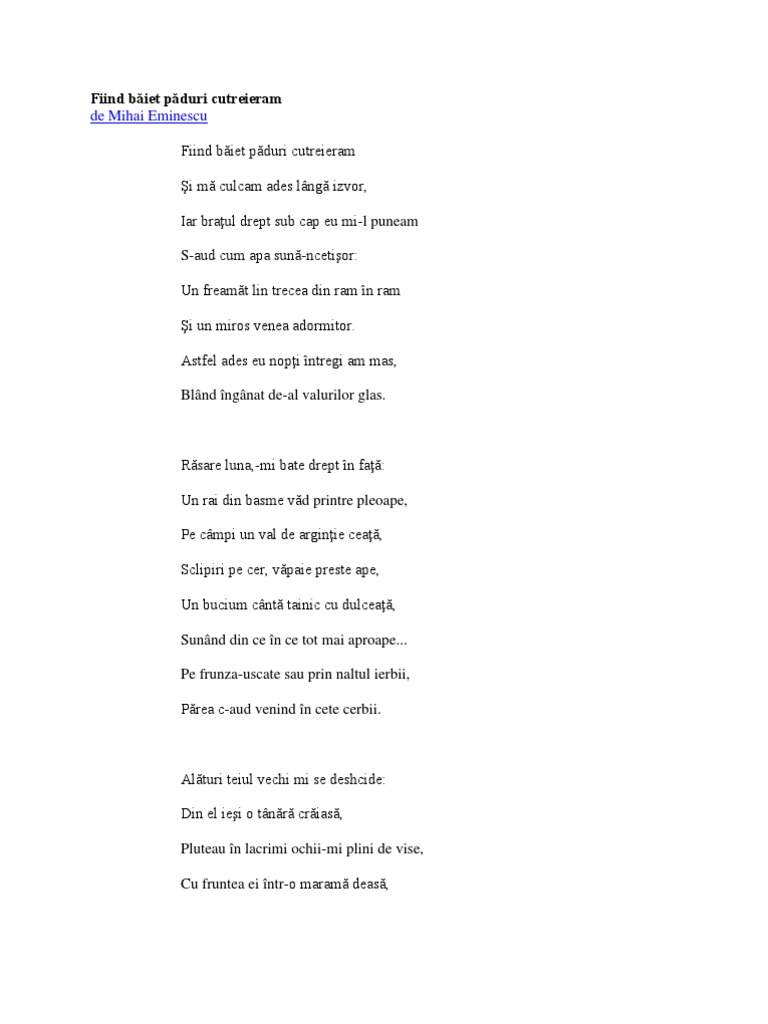 Fiind Baiet Paduri Cutreieram Mihai Eminescu