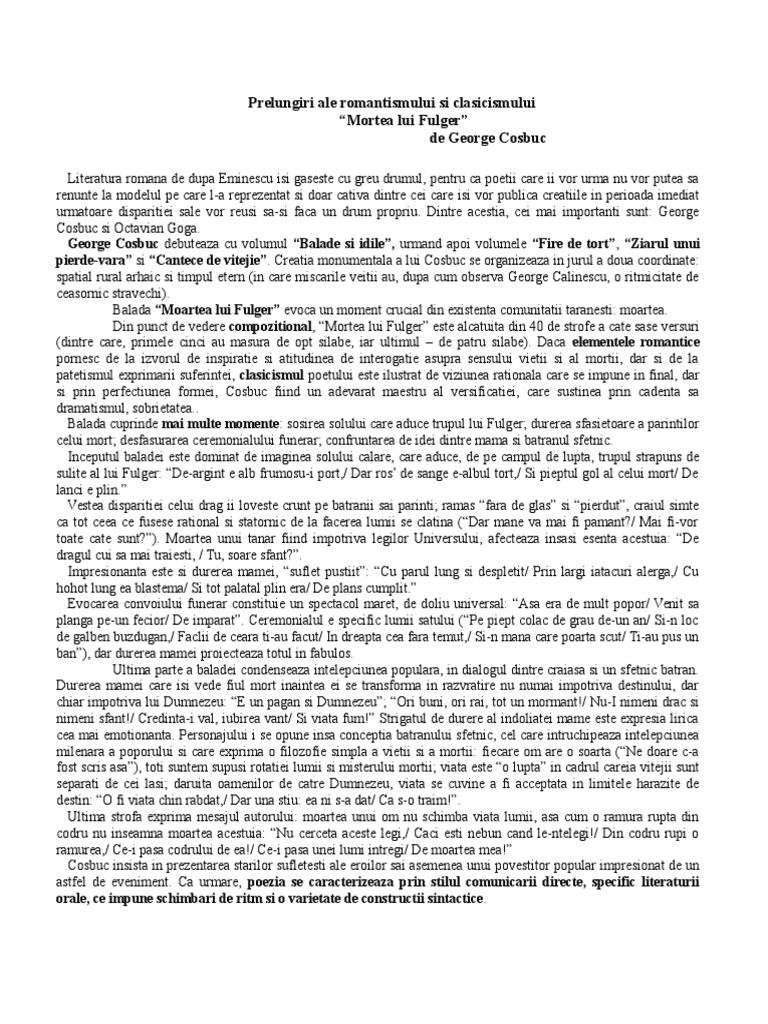 Referat Moartea Lui Fulger George Cosbuc 327847 Graduo