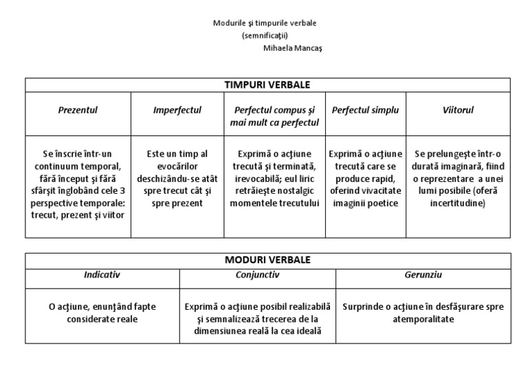 Modurile Si Timpurile Verbale Mihaela Mancas