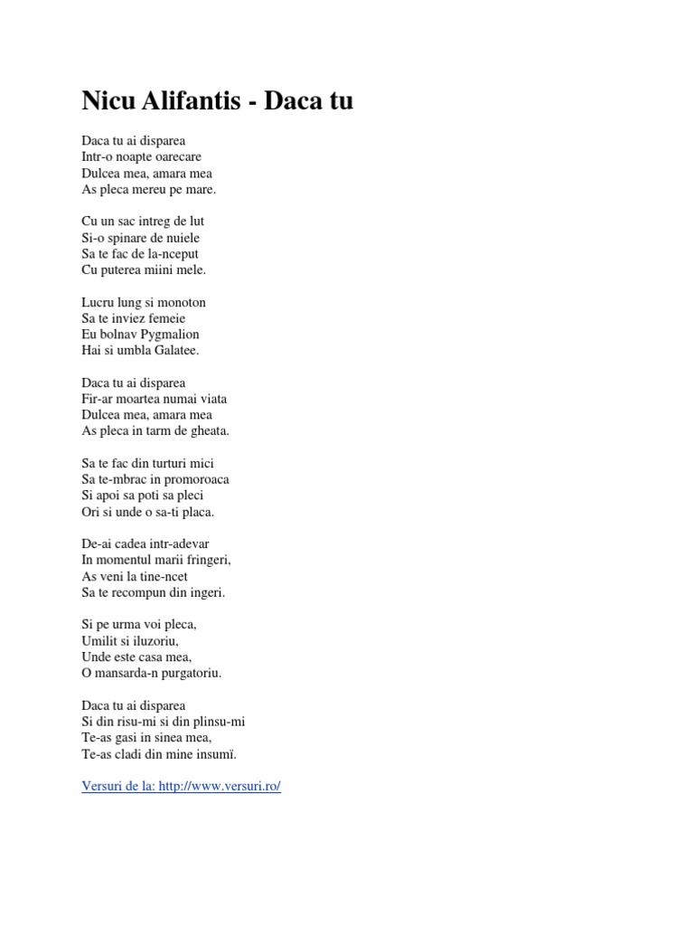 Dacă Tu Ai Dispărea Lyrics By Nicu Alifantis Daca Tu Ai Disparea