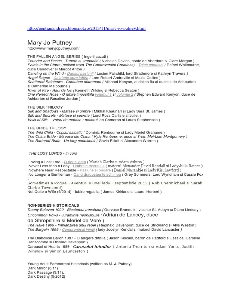 Carti Roman De Dragoste Scrise De Mary Jo Putney