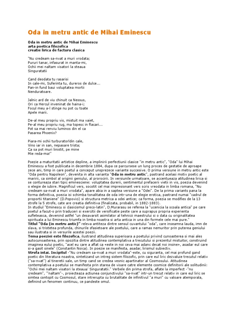 Analiza La Oda In Metru Antic