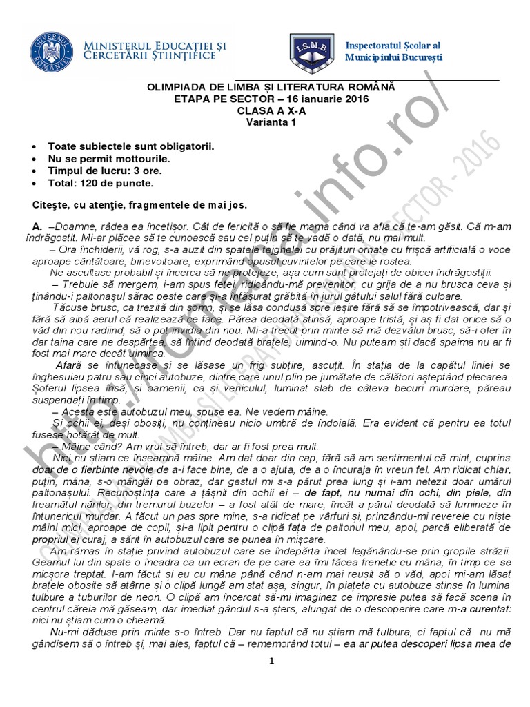 Romana Info Ro 2587 Olimpiada Limba Si Literatura Romana 2016 Sector Cls 10 Pdf