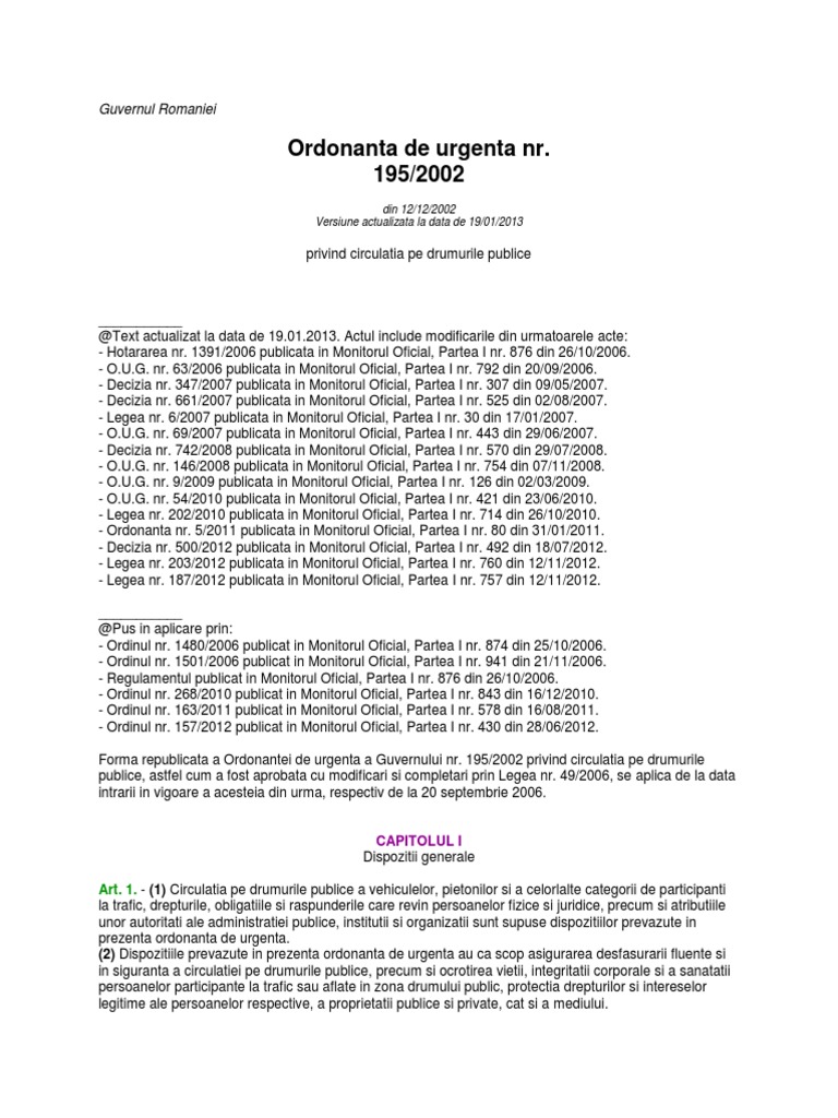 Oug 195 Din 2002 Privind Circulaţia Pe Drumurile Publice Bibliotecă Legislativă Politisti Ro