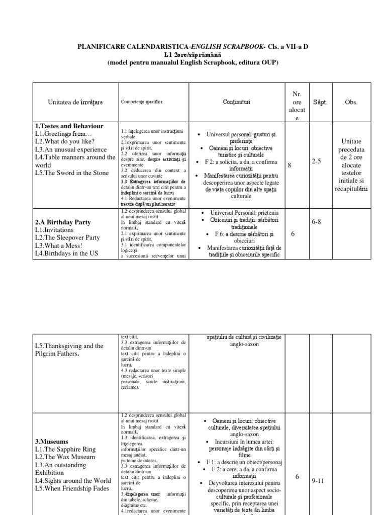 Planificare Unitate English Scrapbook Vii