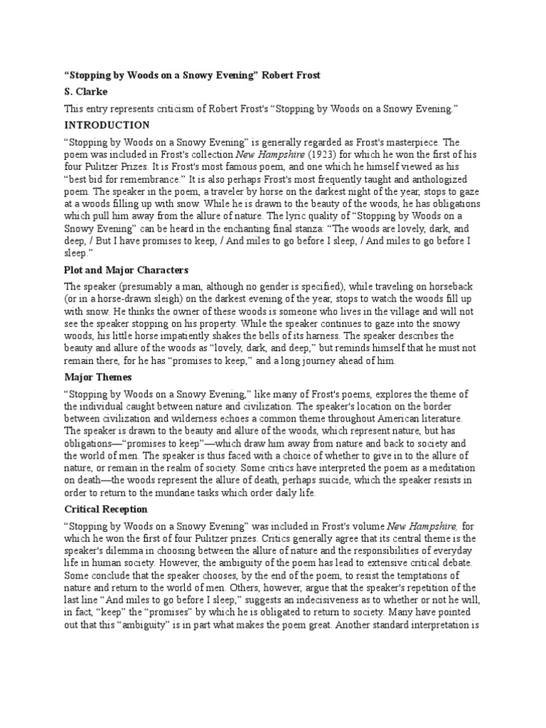 Doc Analysis Stopping By Woods On A Snowy Evening Petulia Taylor Academia Edu