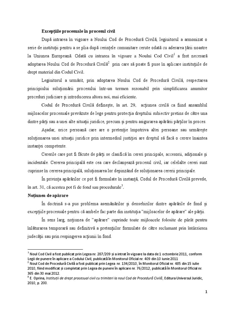 Exceptiile Procesuale In Noul Cod De Procedura Civila