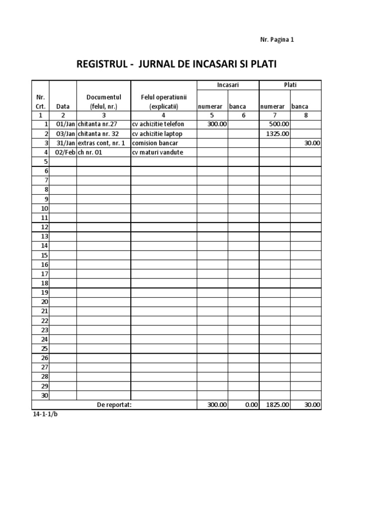 Registrul Jurnal De Incasari Si Plati 14 1 1 B