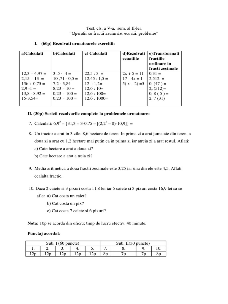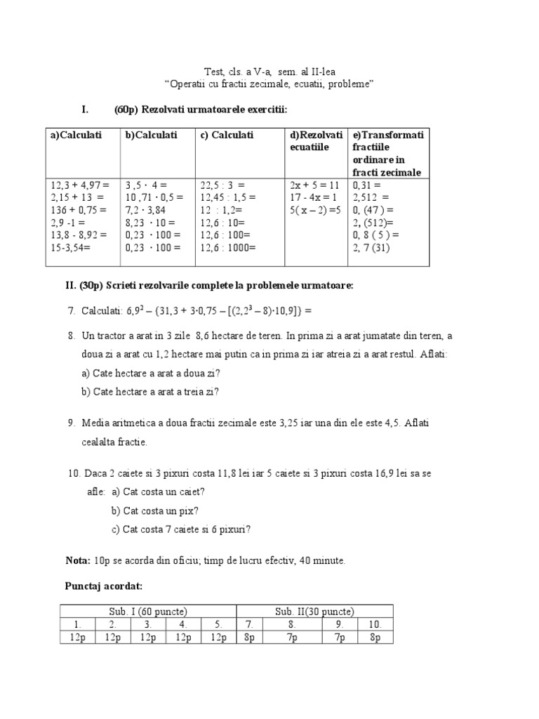 Clasa A V A Testul 1 Fracții Zecimale Full Youtube