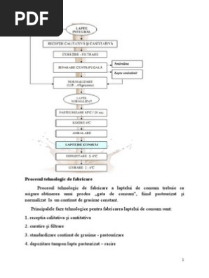 Schema Tehnologica De Obtinere A Laptelui De Consum