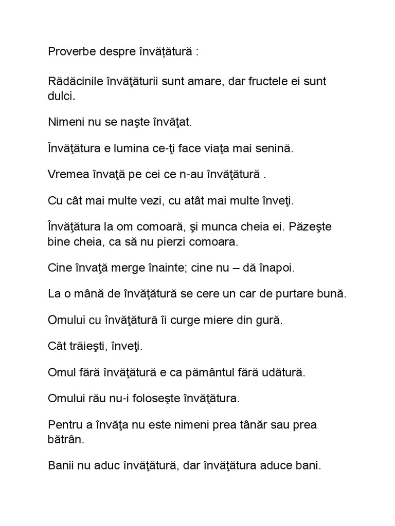 Proverbe Despre Invățătură Anideșcoală Ro