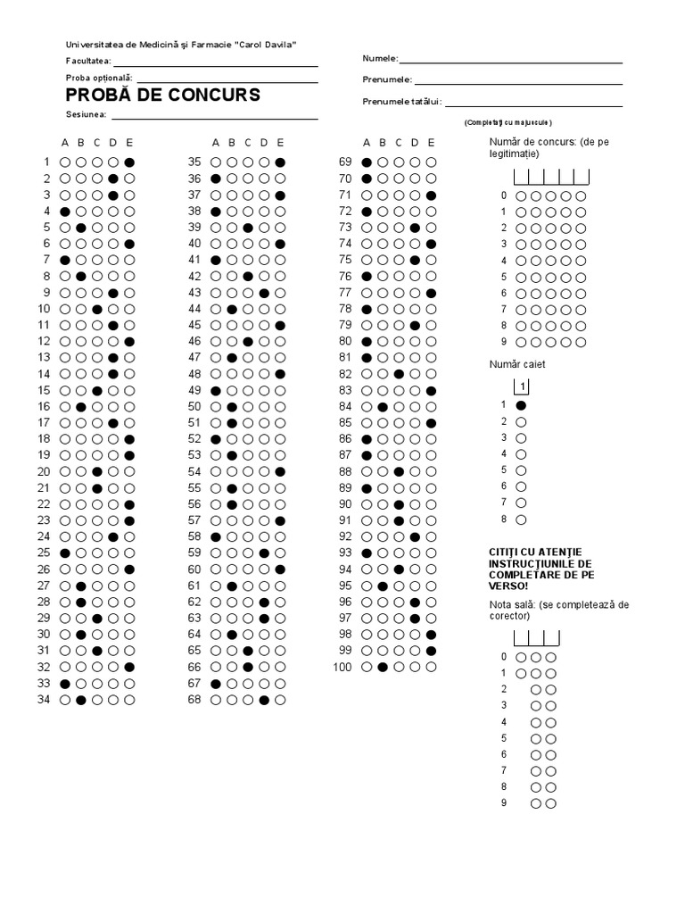 Pervamlearn Blog Archive Subiecte Examen Admitere Carol Davila