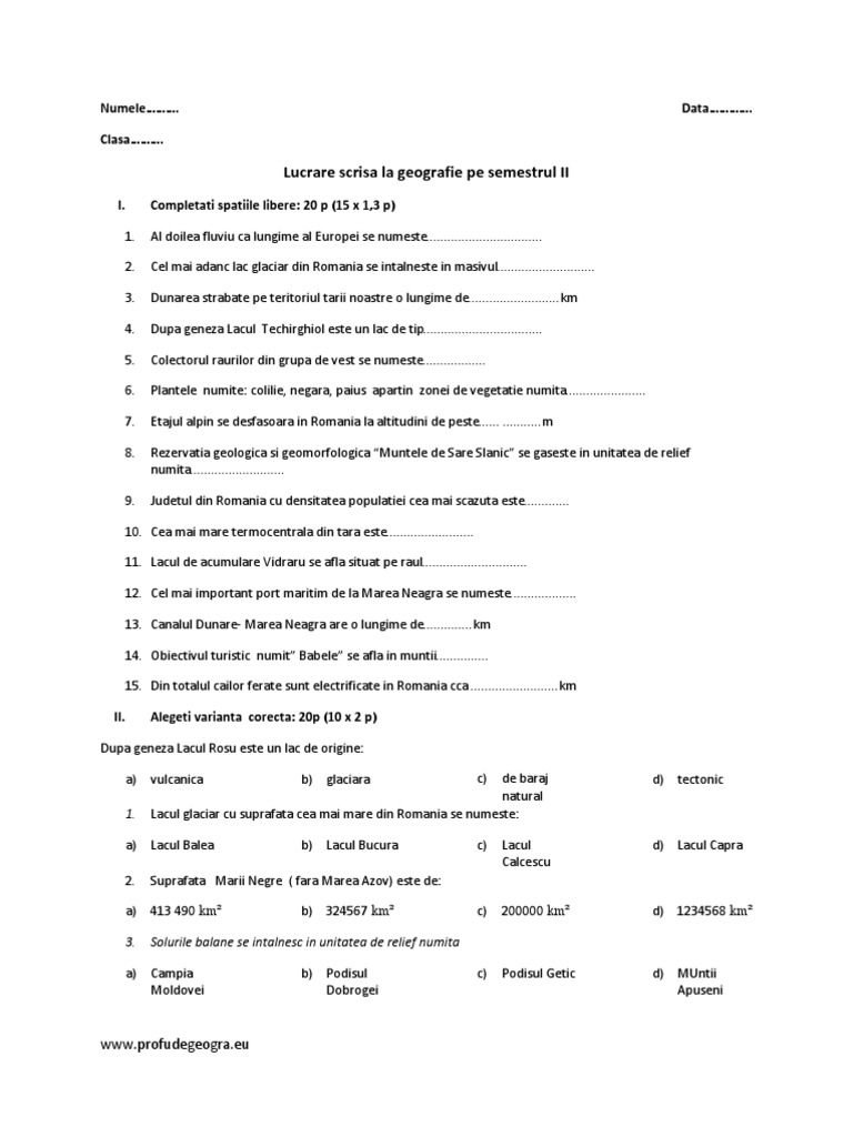 Plecat De Acasă Varianta De Teza La Geografie Pe Sem Ii